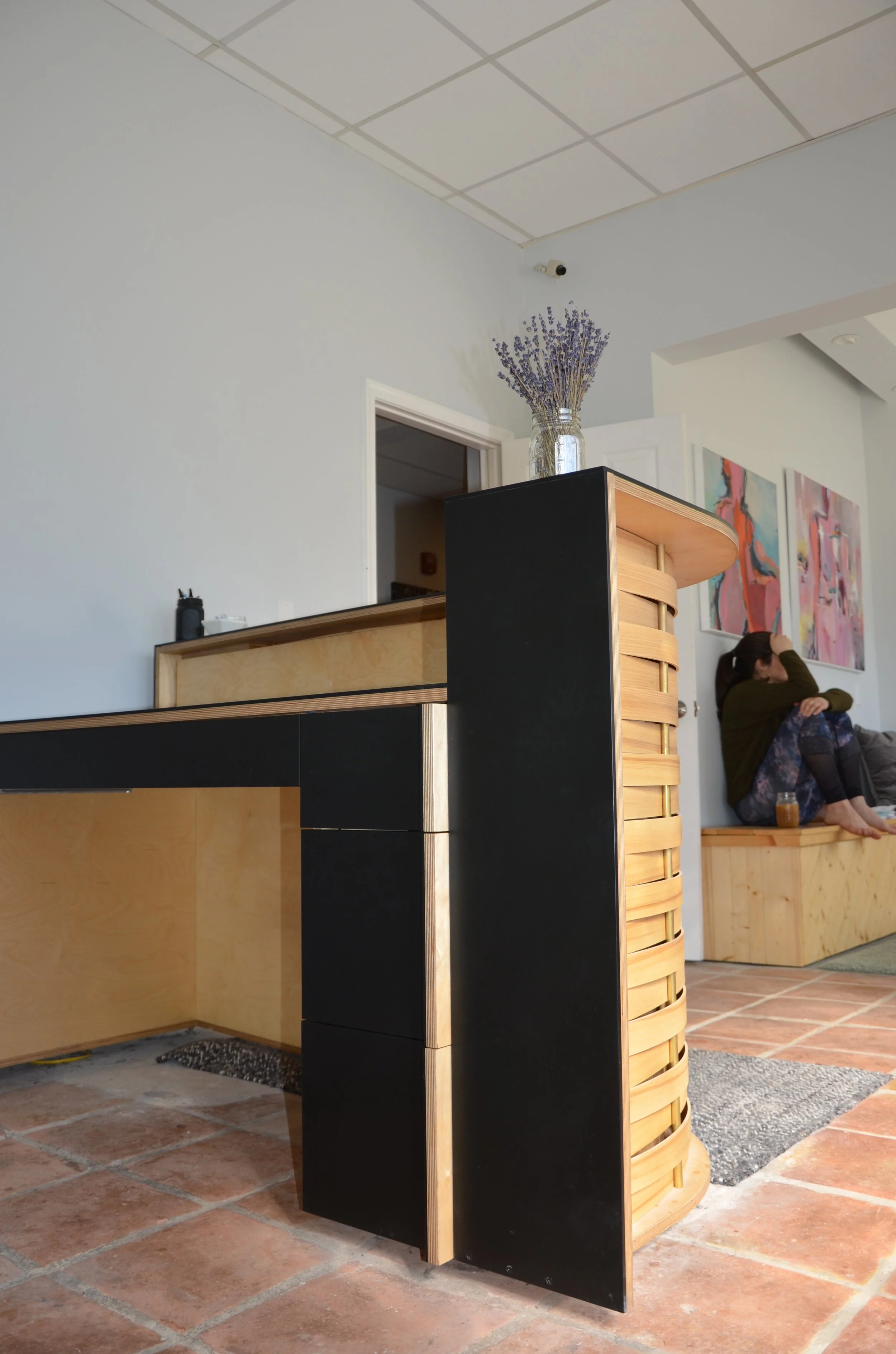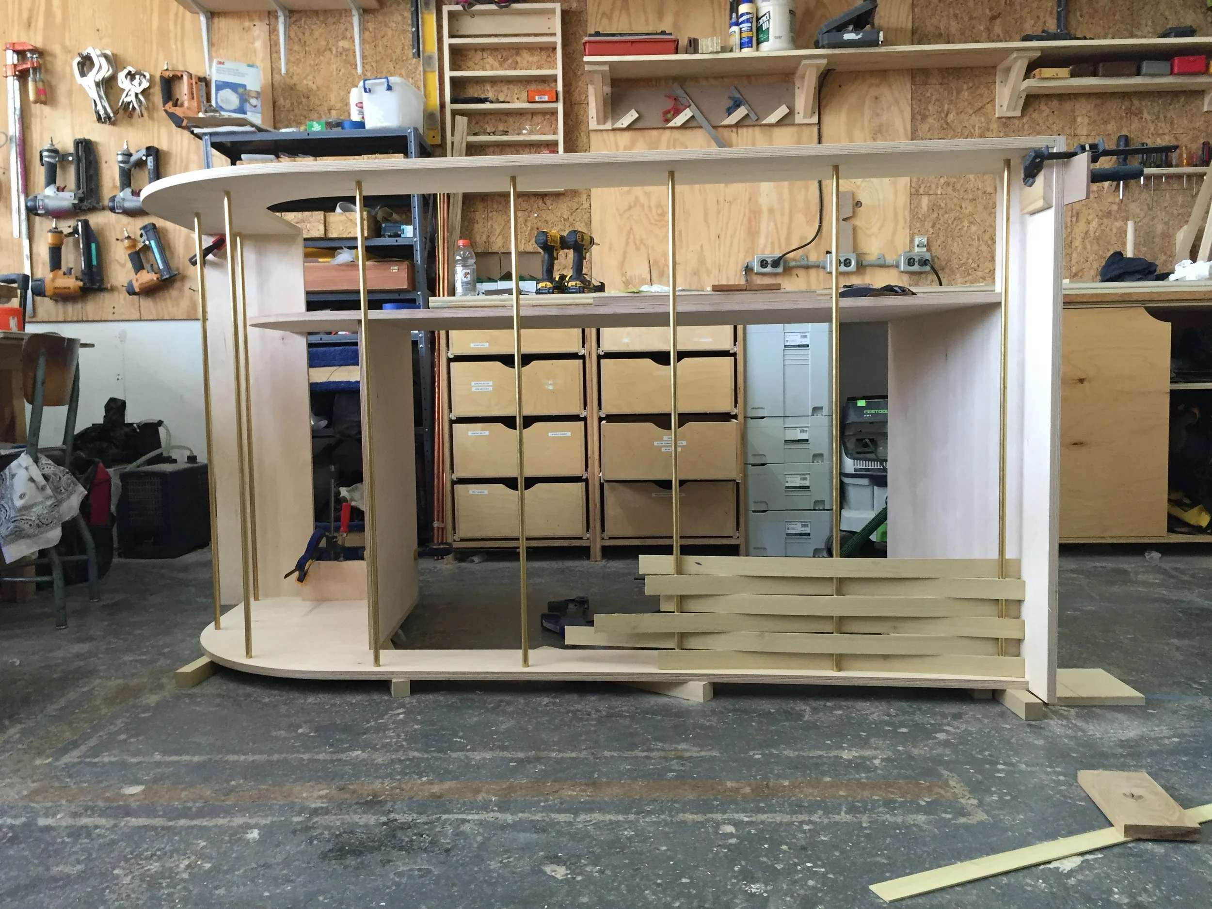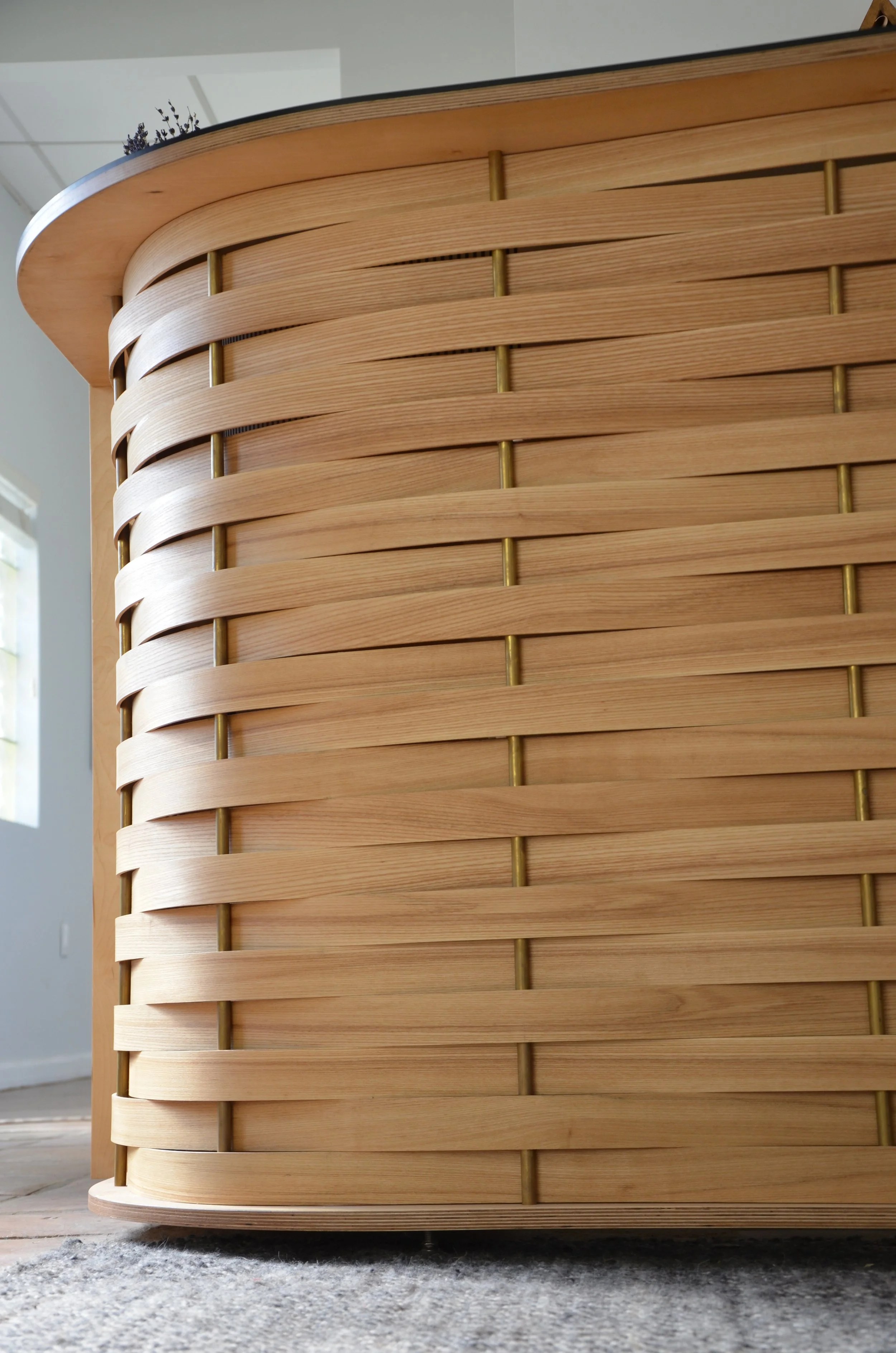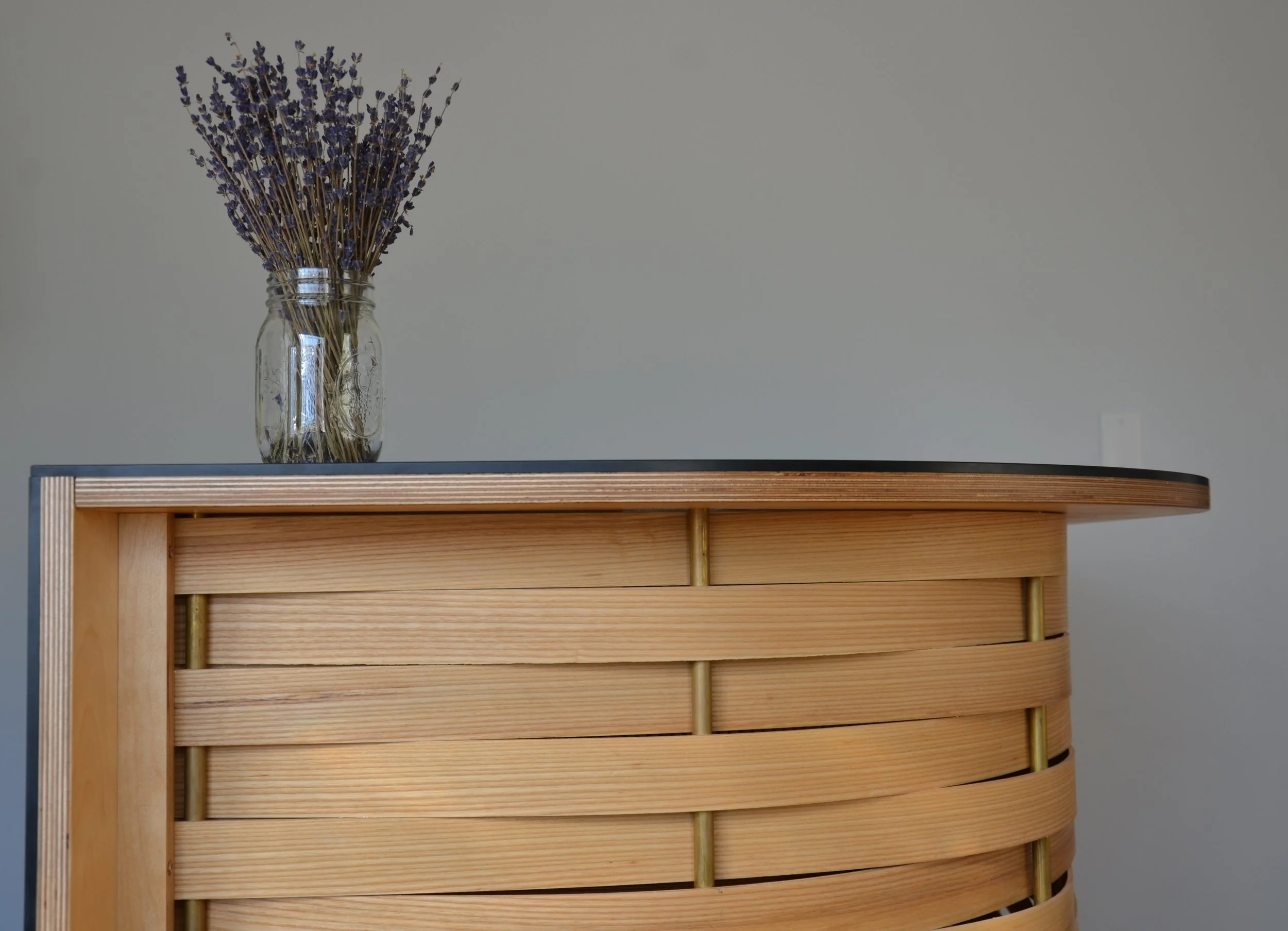 Designed and fabricated using steambent solid ash, brass rod, baltic birch plywood and Richlite.